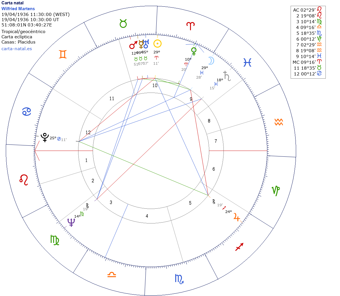 Wilfried Martens nació el 19 de Abril de 1936 a las 11:30:00 en Sleidinge (Flandes Oriental), Bélgica