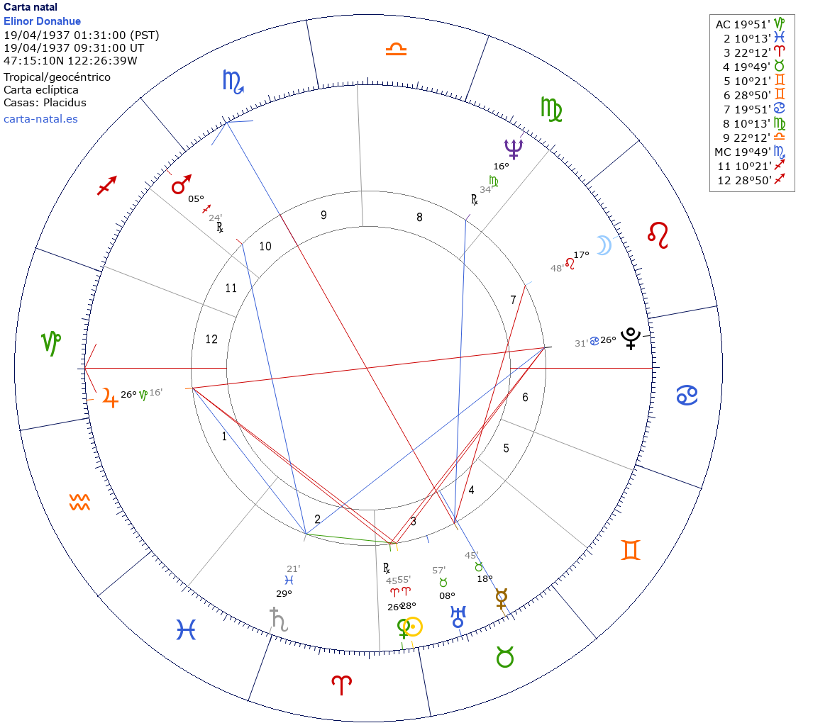 Esta es la carta natal de Elinor Donahue, actriz estadounidense