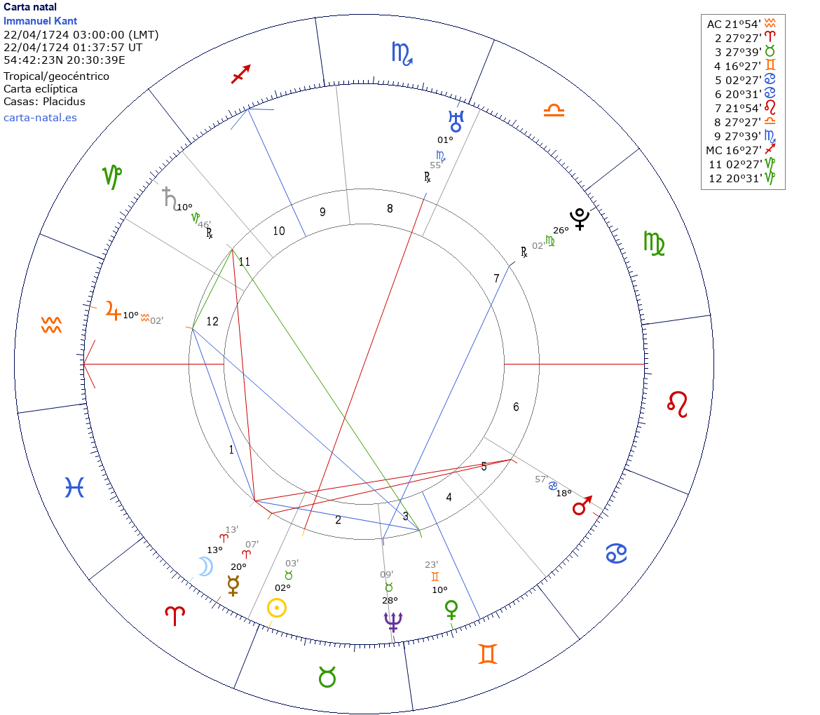 Esta es la carta natal de Immanuel Kant, filósofo alemán.