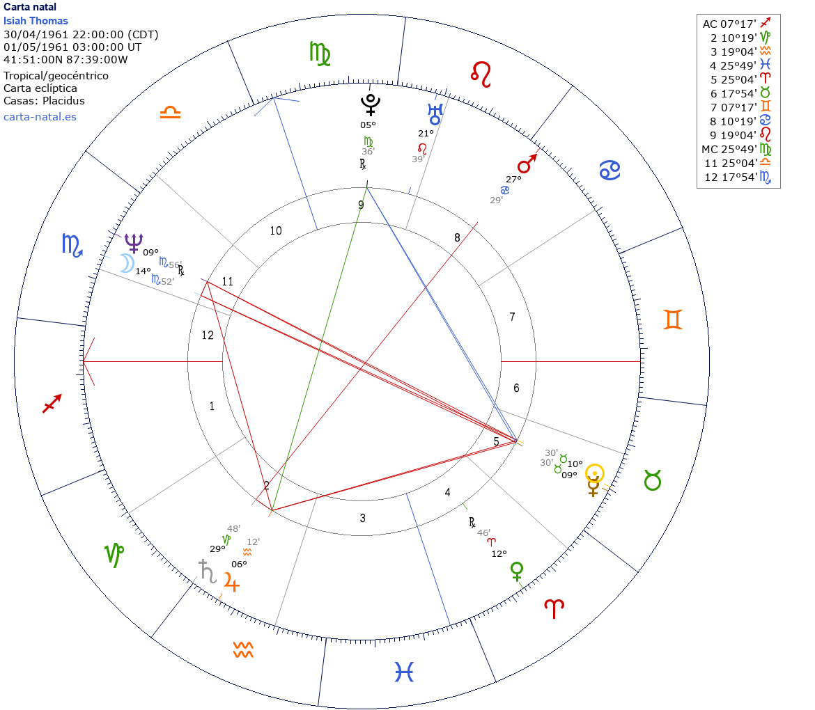 Isiah Thomas nació el 30 de Abril de 1961 a las 22:00:00 en Chicago (Cook IL), Estados Unidos