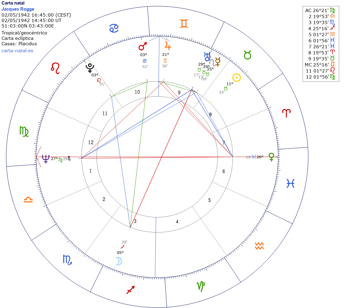 Esta es la carta natal de Jacques Rogge, presidente del Comité Olímpico Internacional.