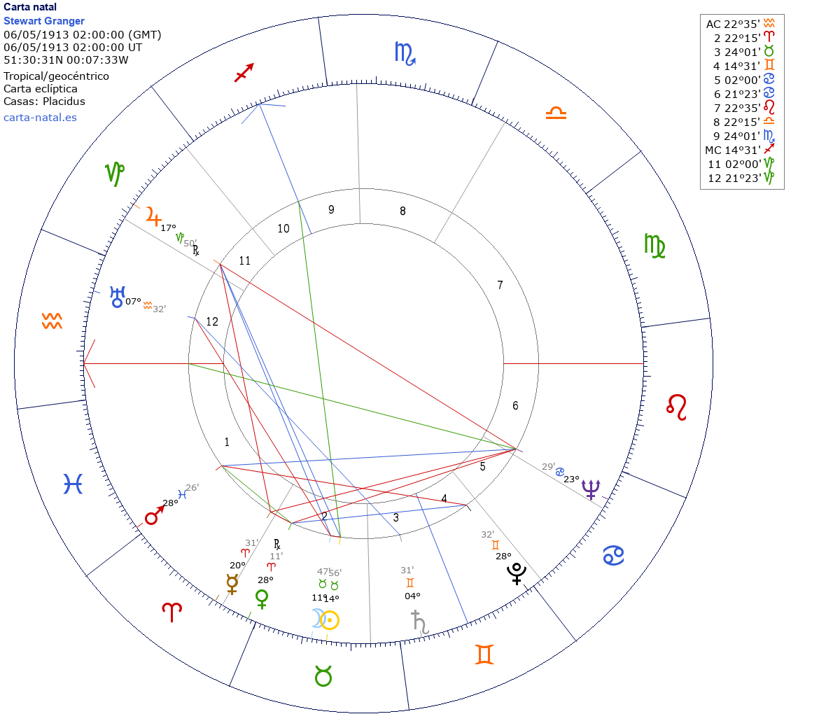 Esta es la carta natal de Stewart Granger, actor británico.