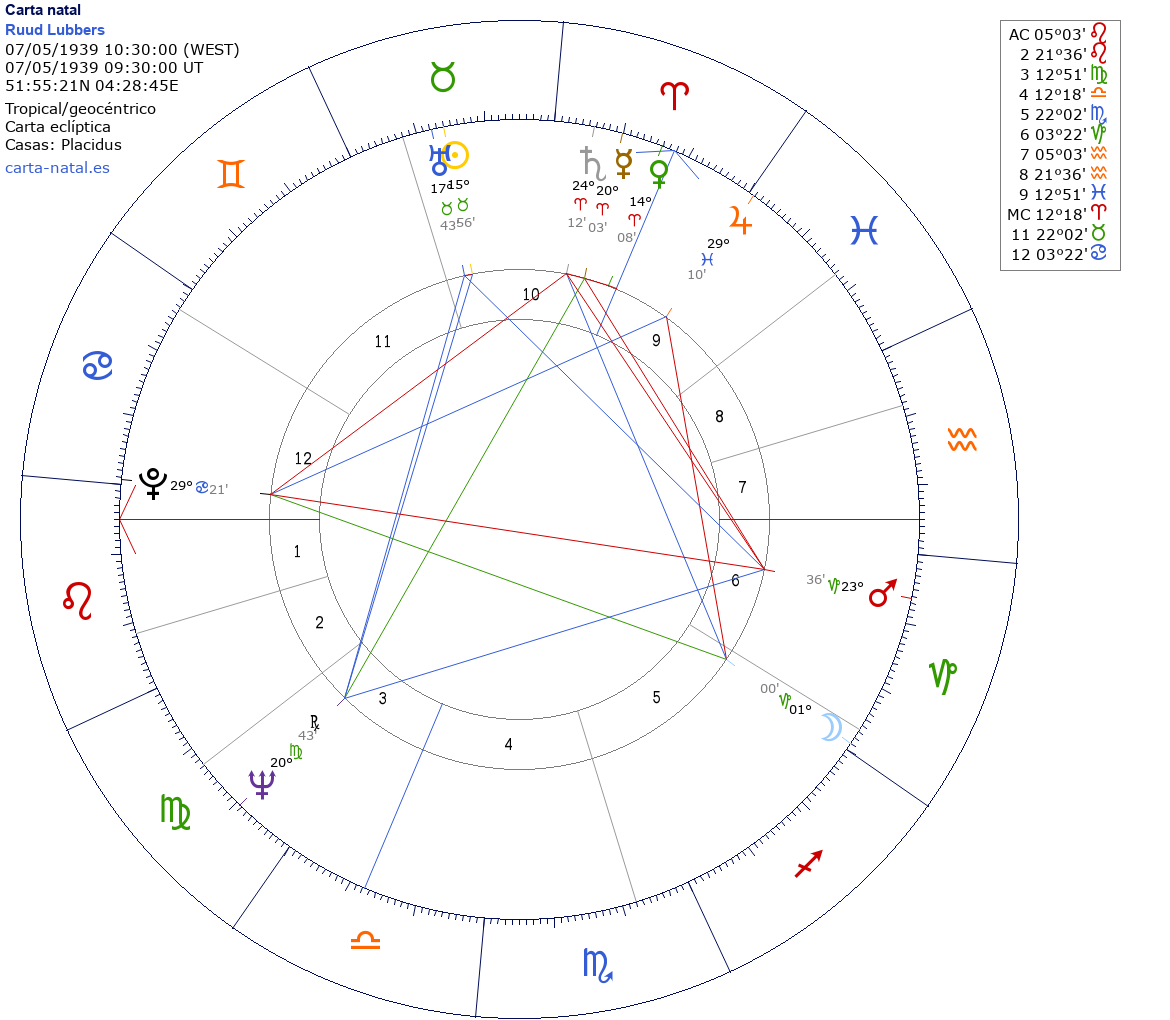 Esta es la carta natal de Ruud Lubbers, político holandés.