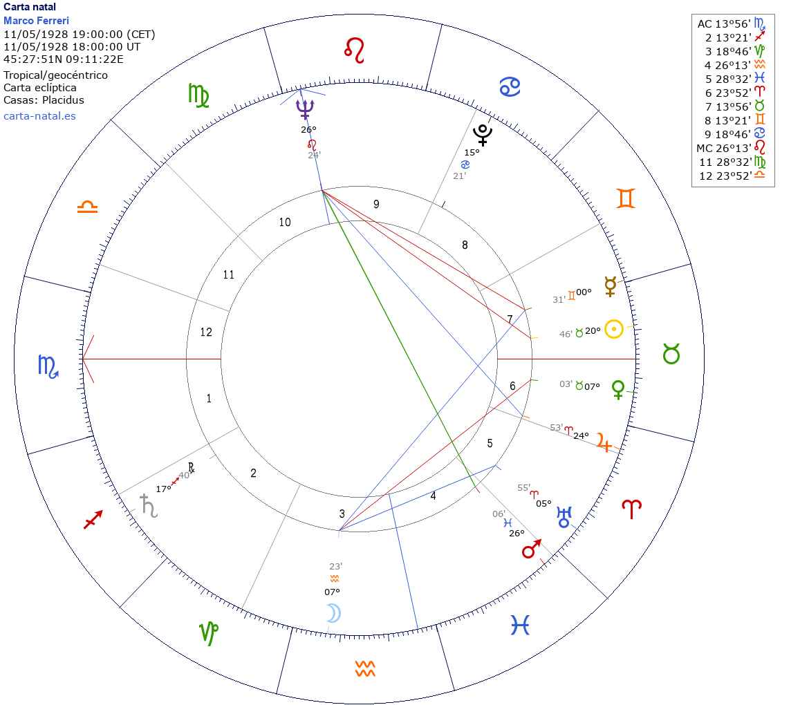 Marco Ferreri nació el 11 de Mayo de 1928 a las 19:00:00 en Milano (Milan), Italia
