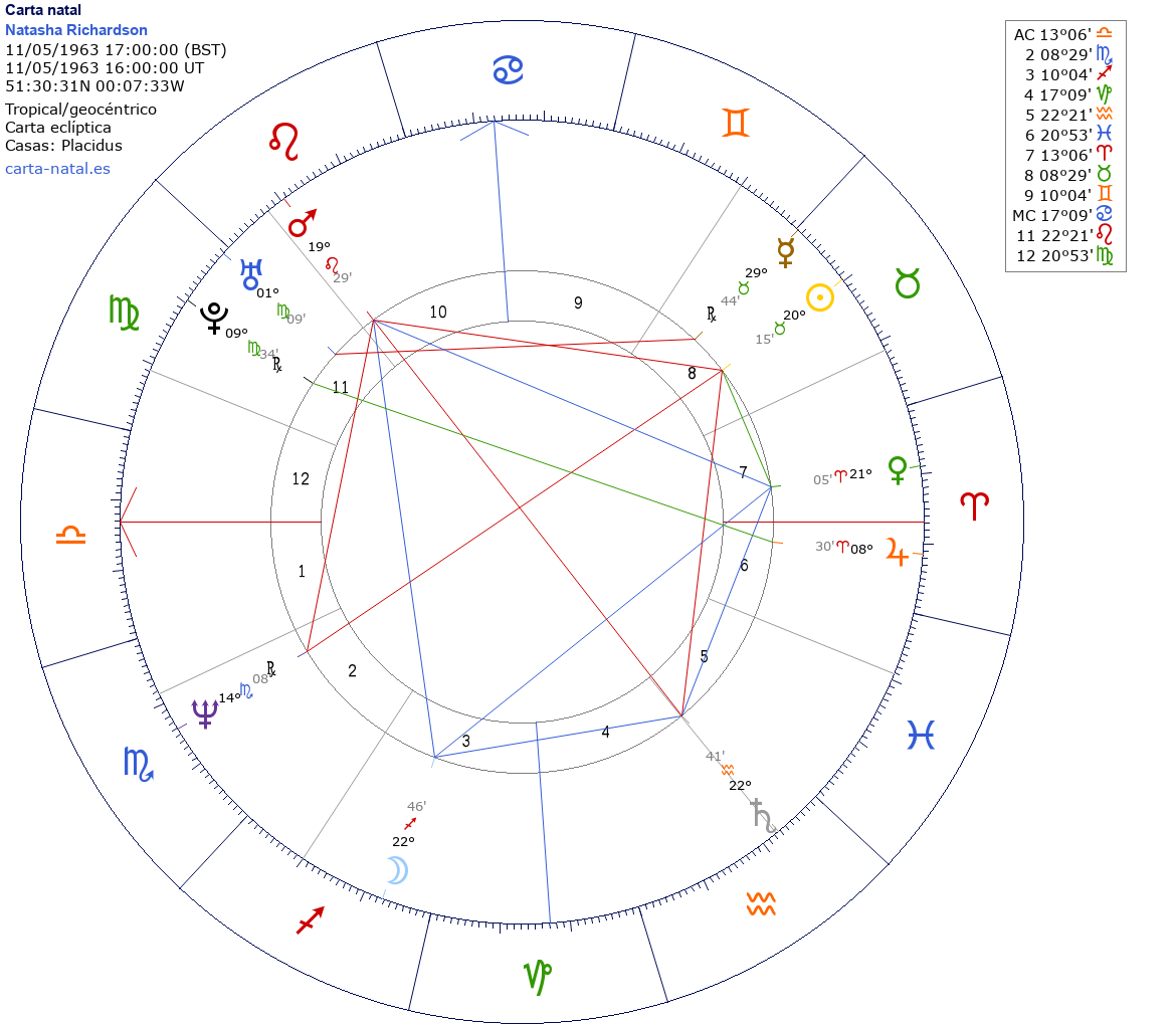 Esta es la carta natal de Natasha Richardson, actriz inglesa.