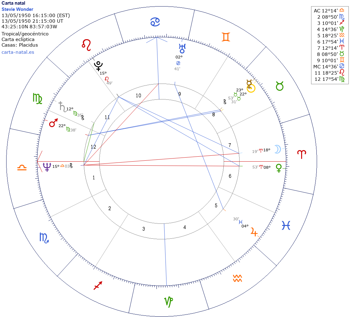 Esta es la carta natal de Stevie Wonder, músico estadounidense.