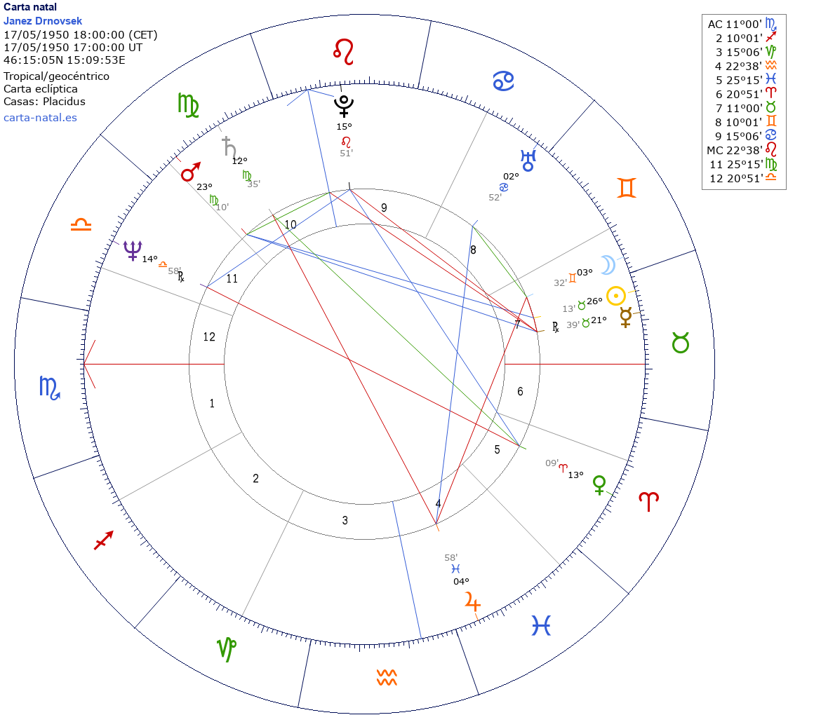 | NeptunoNeptuno | Libra14°58'26"R | 11 |