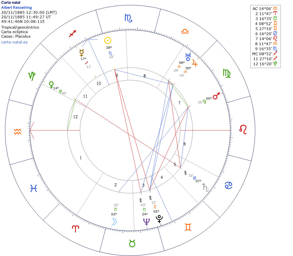 Esta es la carta natal de Albert Kesselring, mariscal de campo alemán.