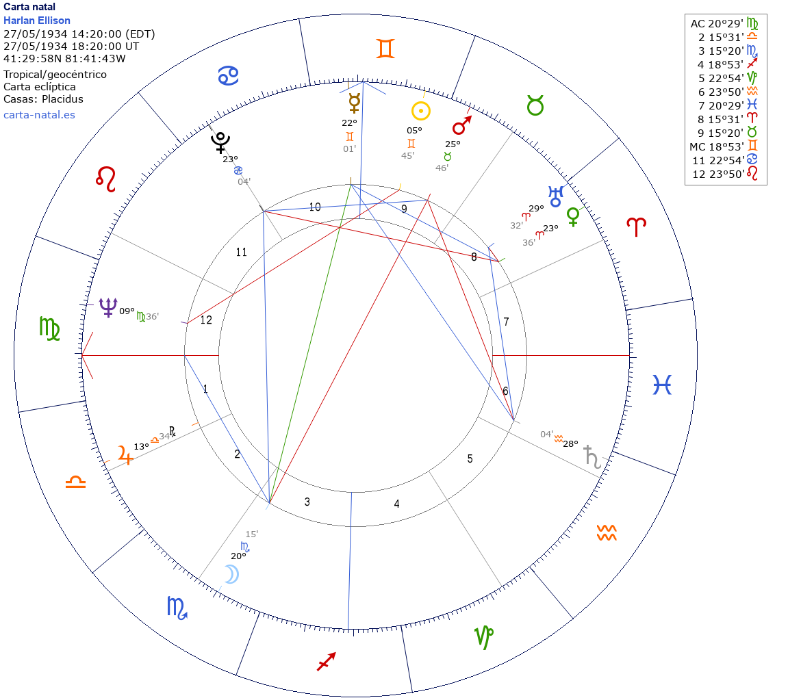 Esta es la carta natal de Harlan Ellison, escritor estadounidense.