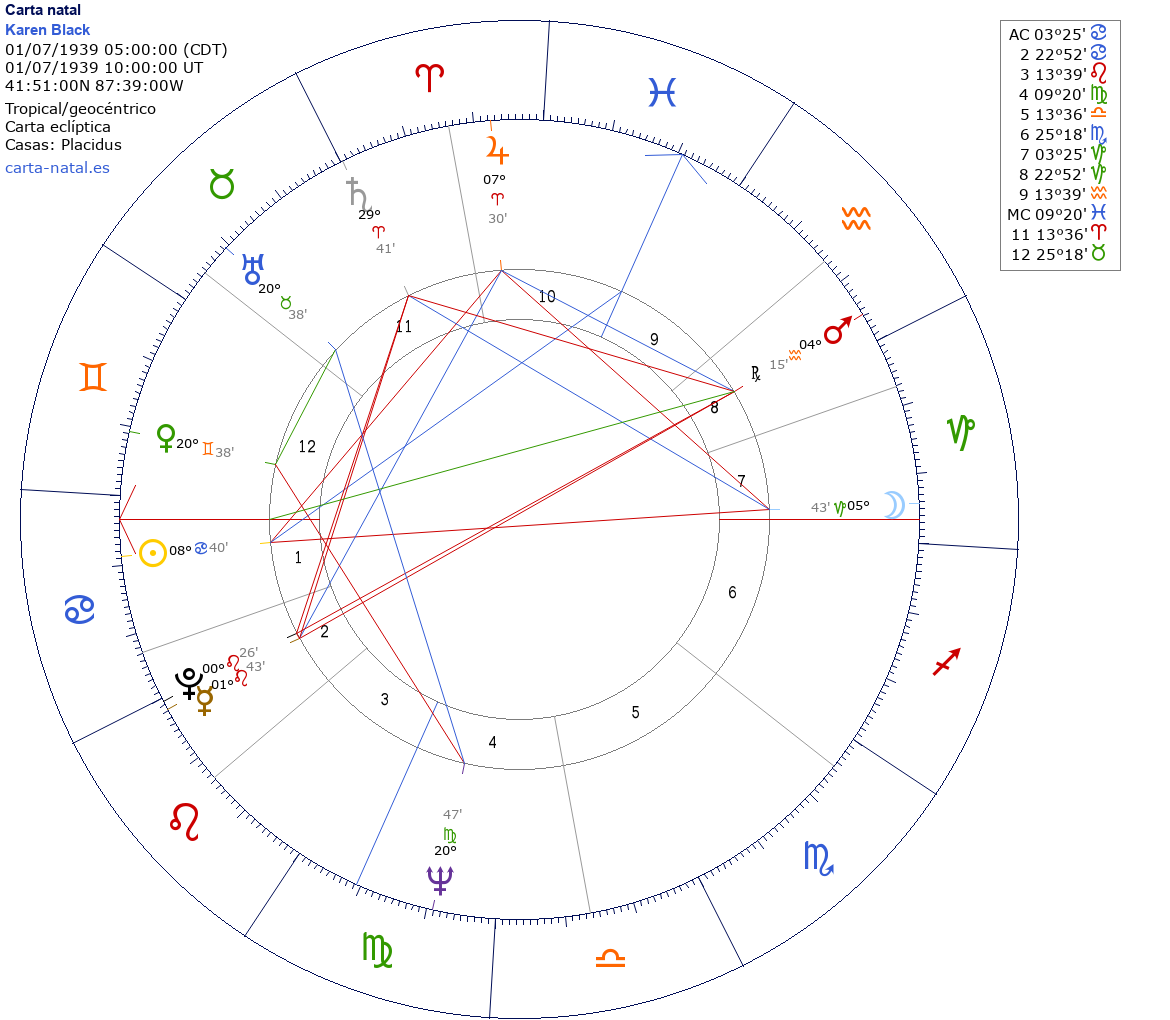 Esta es la carta natal de Karen Black, actriz estadounidense.