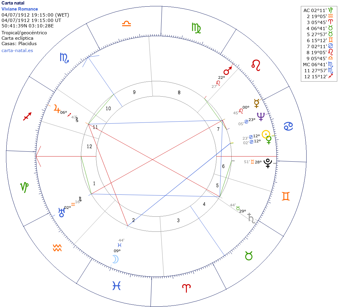 Esta es la carta natal de Viviane Romance, actriz francesa.