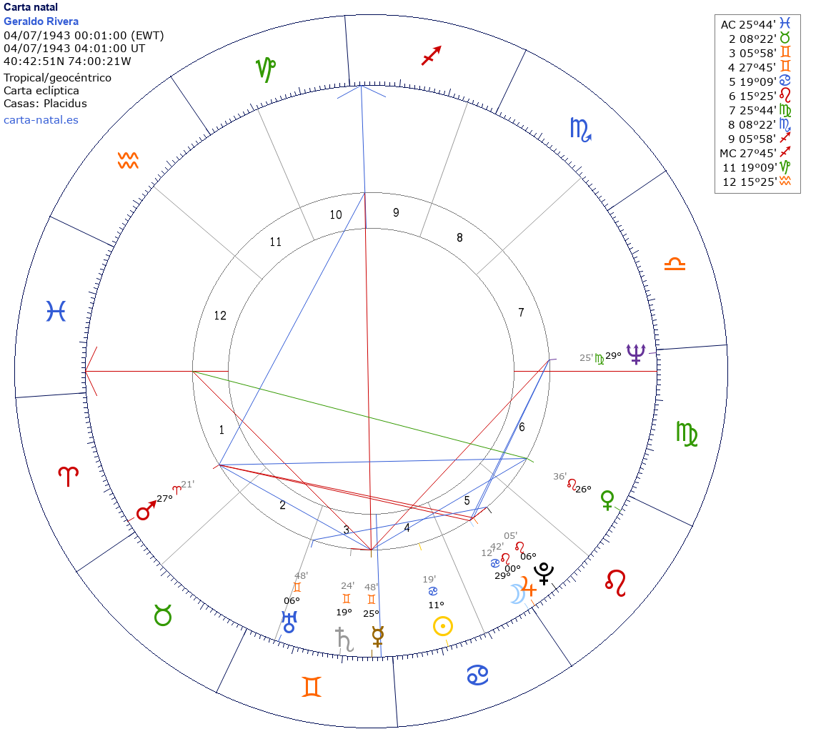Geraldo Rivera nació el 4 de Julio de 1943 a las 00:01:00 en New York City (New York NY), Estados Unidos