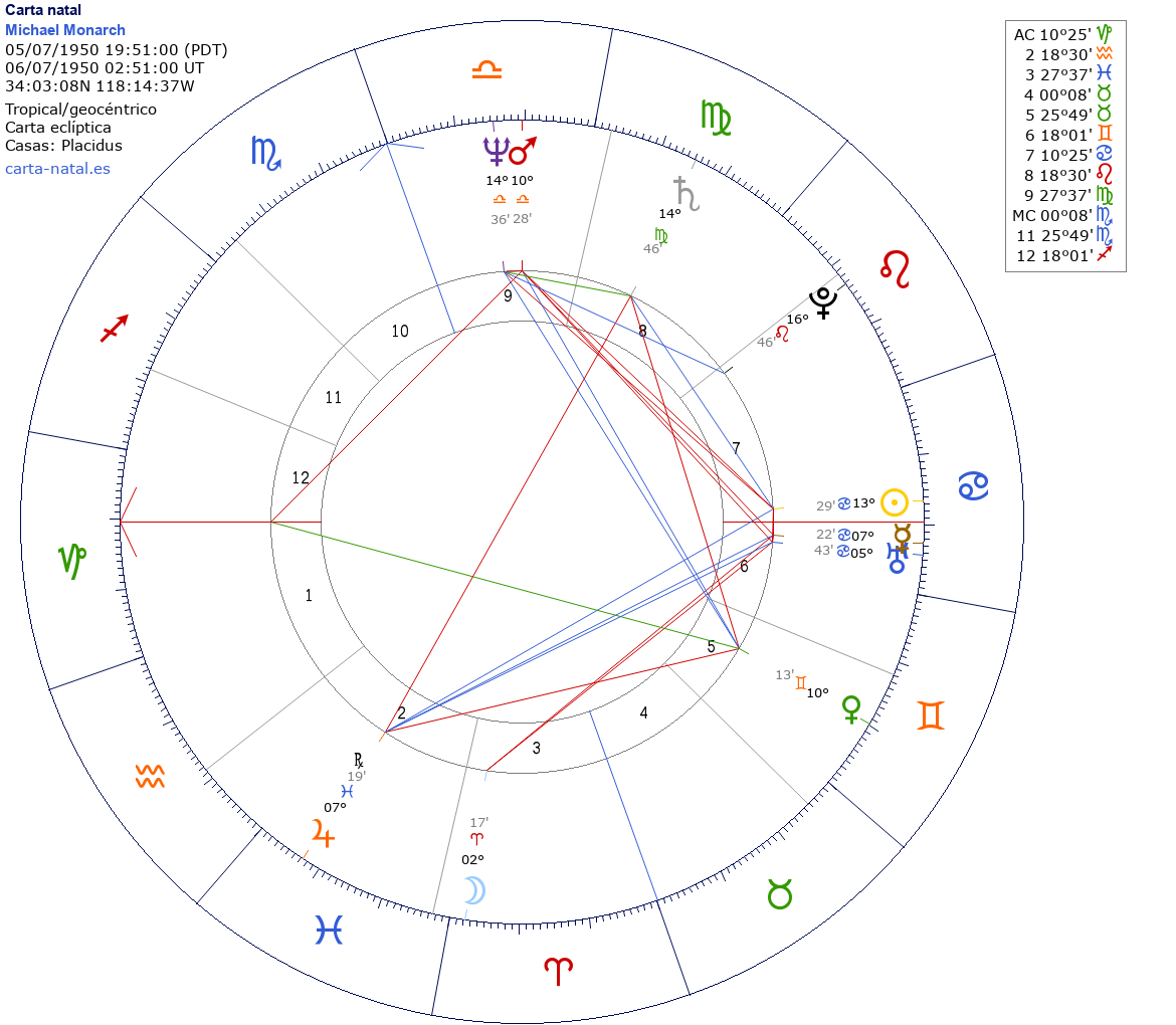 Esta es la carta natal de Michael Monarch,guitarrista estadounidense(Steppenwolf).