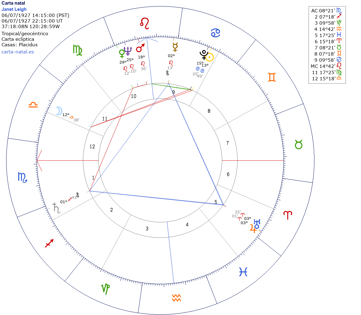 Esta es la carta natal de Janet Leigh, actriz estadounidense.