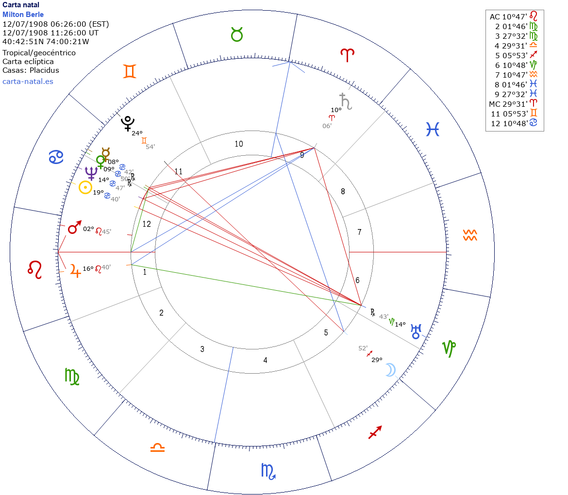 Esta es la carta natal de Milton Berle, actor estadounidense.