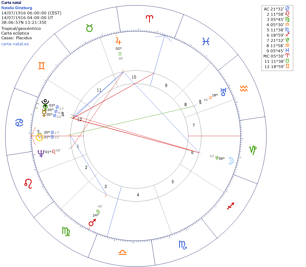 Esta es la carta natal de Natalia Ginzburg, escritora italiana.