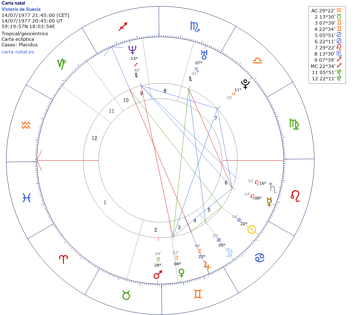 Esta es la carta natal de Victoria de Suecia, Princesa Heredera al trono de Suecia