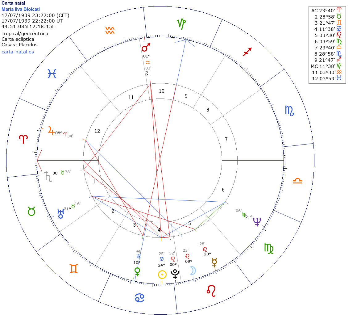 María Ilva Biolcati nació el 17 de Julio de 1939 a las 23:22:00 en Goro (Ferrara), Italia