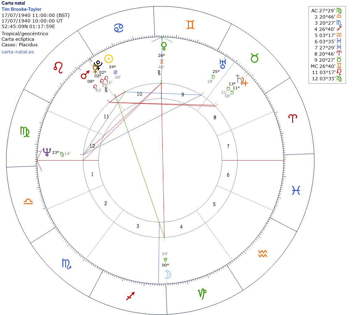Esta es la carta natal de Tim Brooke-Taylor, actor cómico británico.
