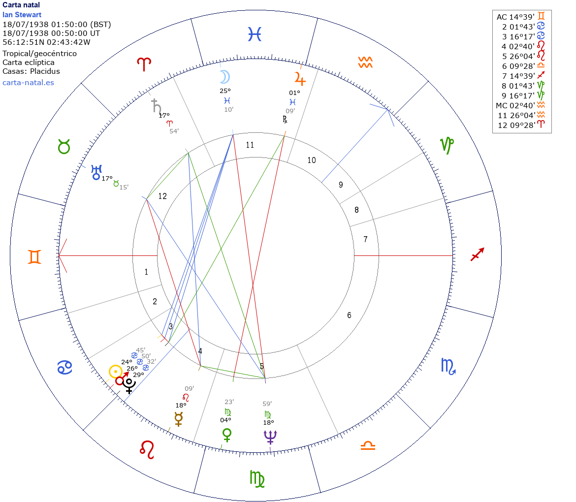 Esta es la carta natal de Ian Stewart, ex-tecladista escocés (The Rolling Stones).