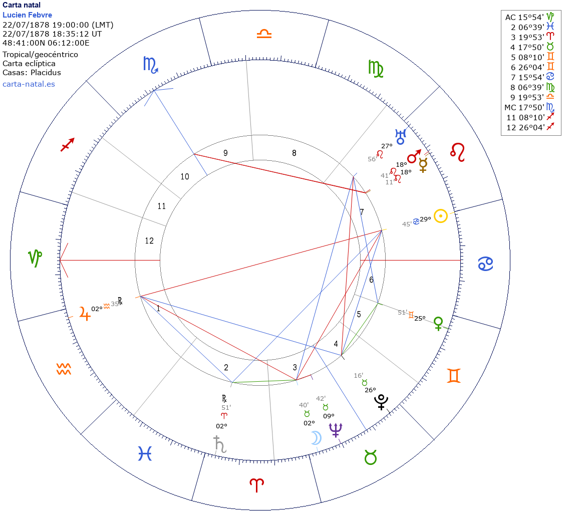 Lucien Febvre nació el 22 de Julio de 1878 a las 19:00:00 en Nancy (Lorena), Francia