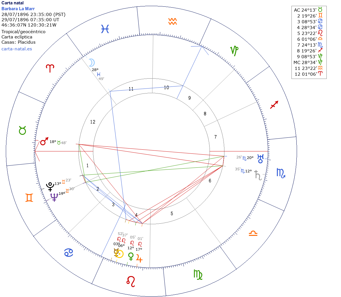 Esta es la carta natal de Barbara La Marr, actriz estadounidense.