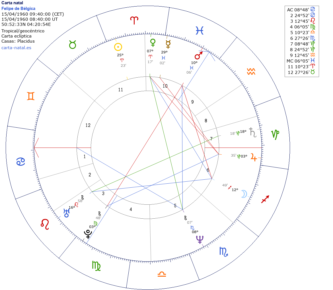 Esta es la carta natal de Felipe I de Wettin, rey de Bélgica.