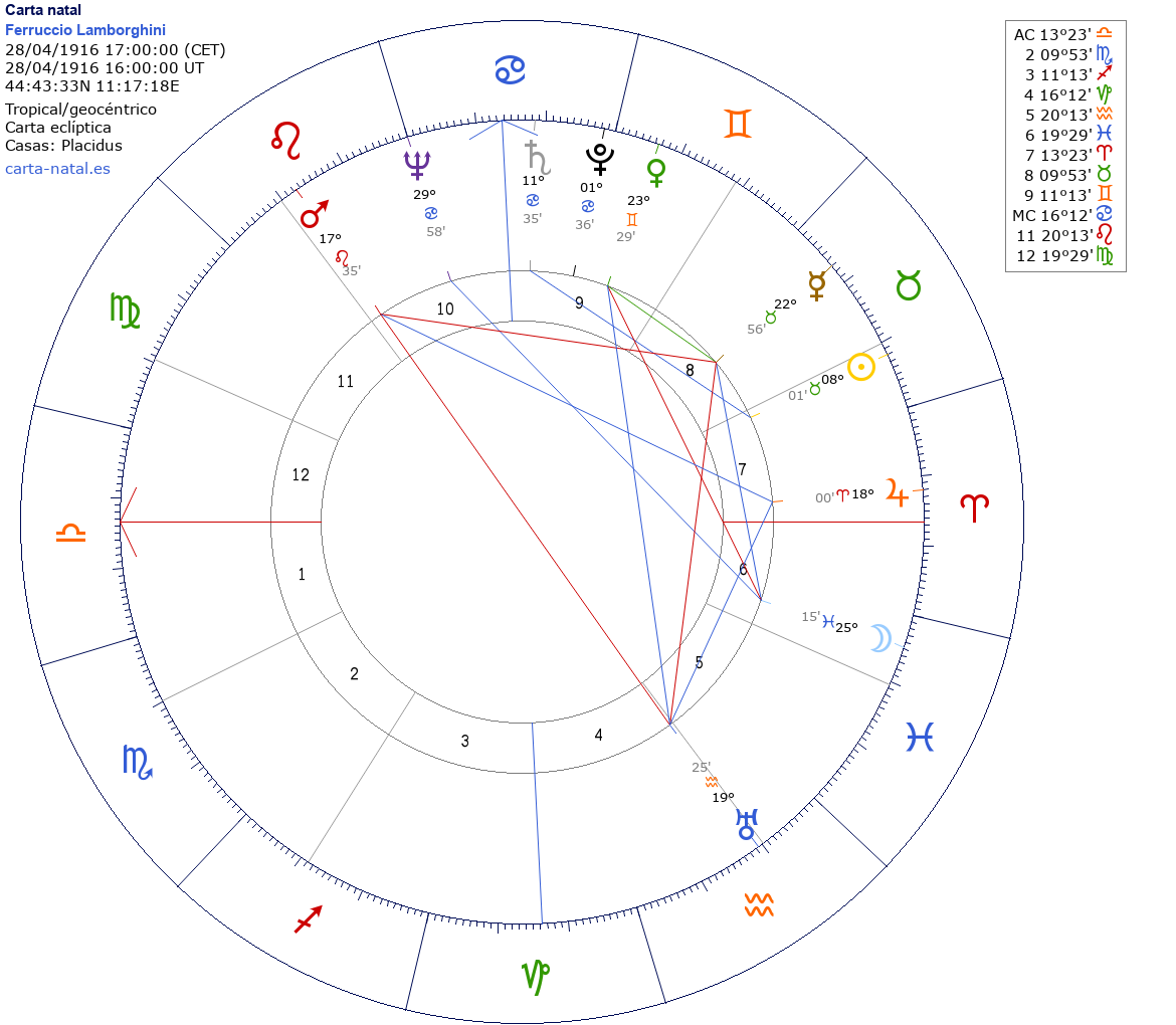 Ferruccio Lamborghini nació el 28 de Abril de 1916 a las 17:00:00 en Cento (Ferrara), Italia
