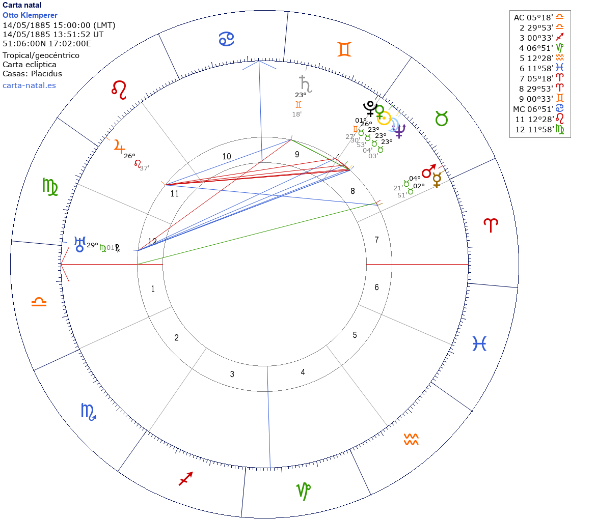 Otto Klemperer nació el 14 de Mayo de 1885 a las 15:00:00 en Wroclaw (Baja Silesia), Polonia
