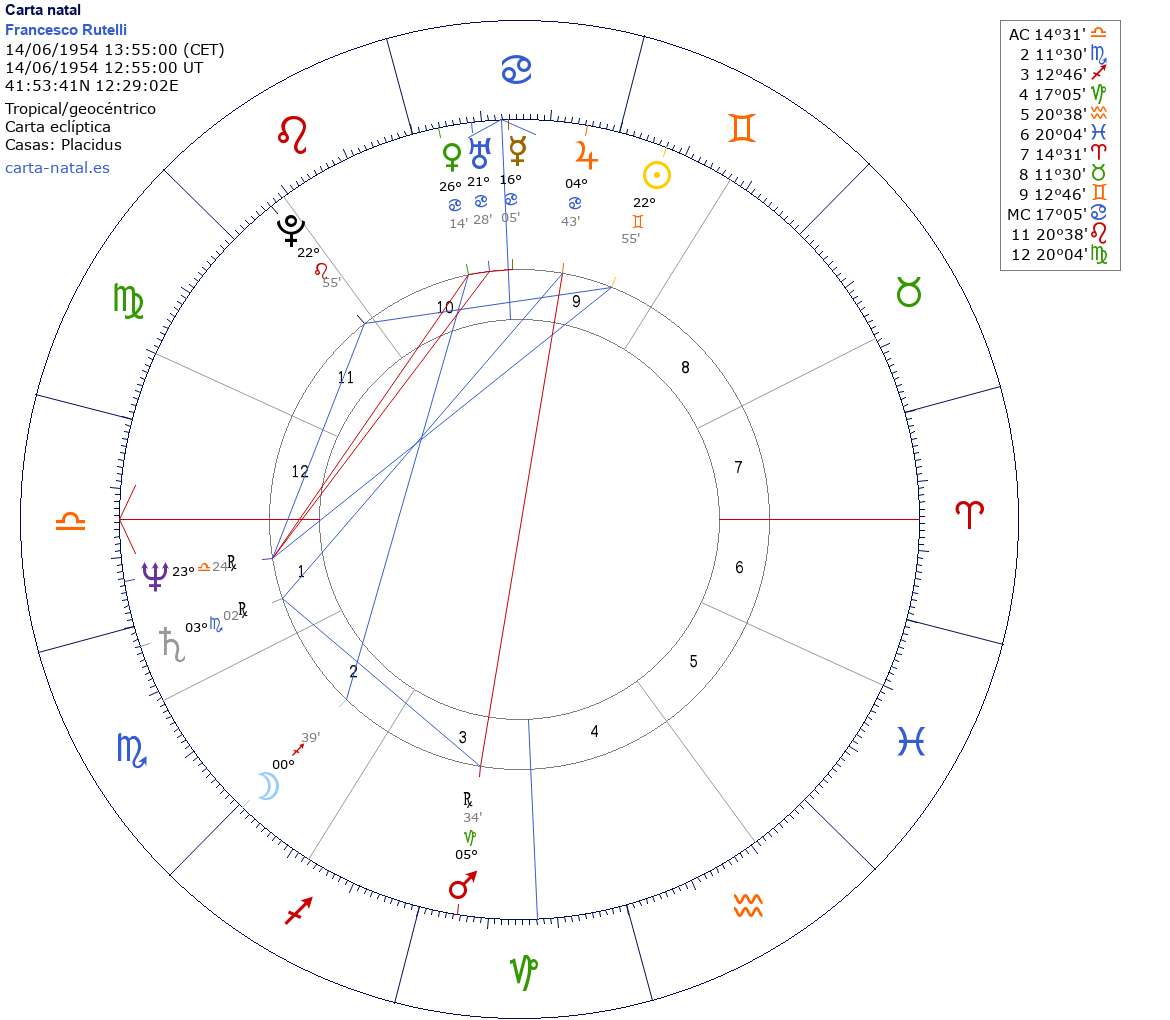 Esta es la carta natal de Francesco Rutelli, político Italiano.