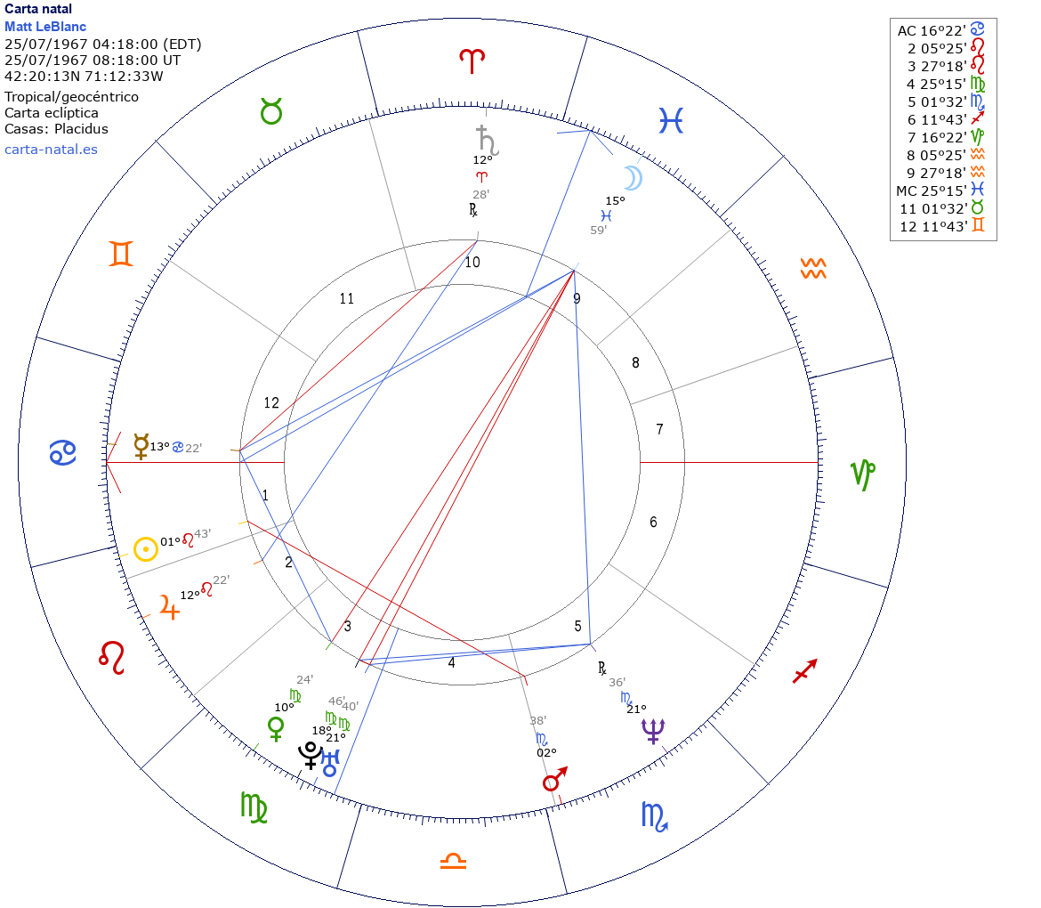 Esta es la carta natal de Matt LeBlanc, actor estadounidense.