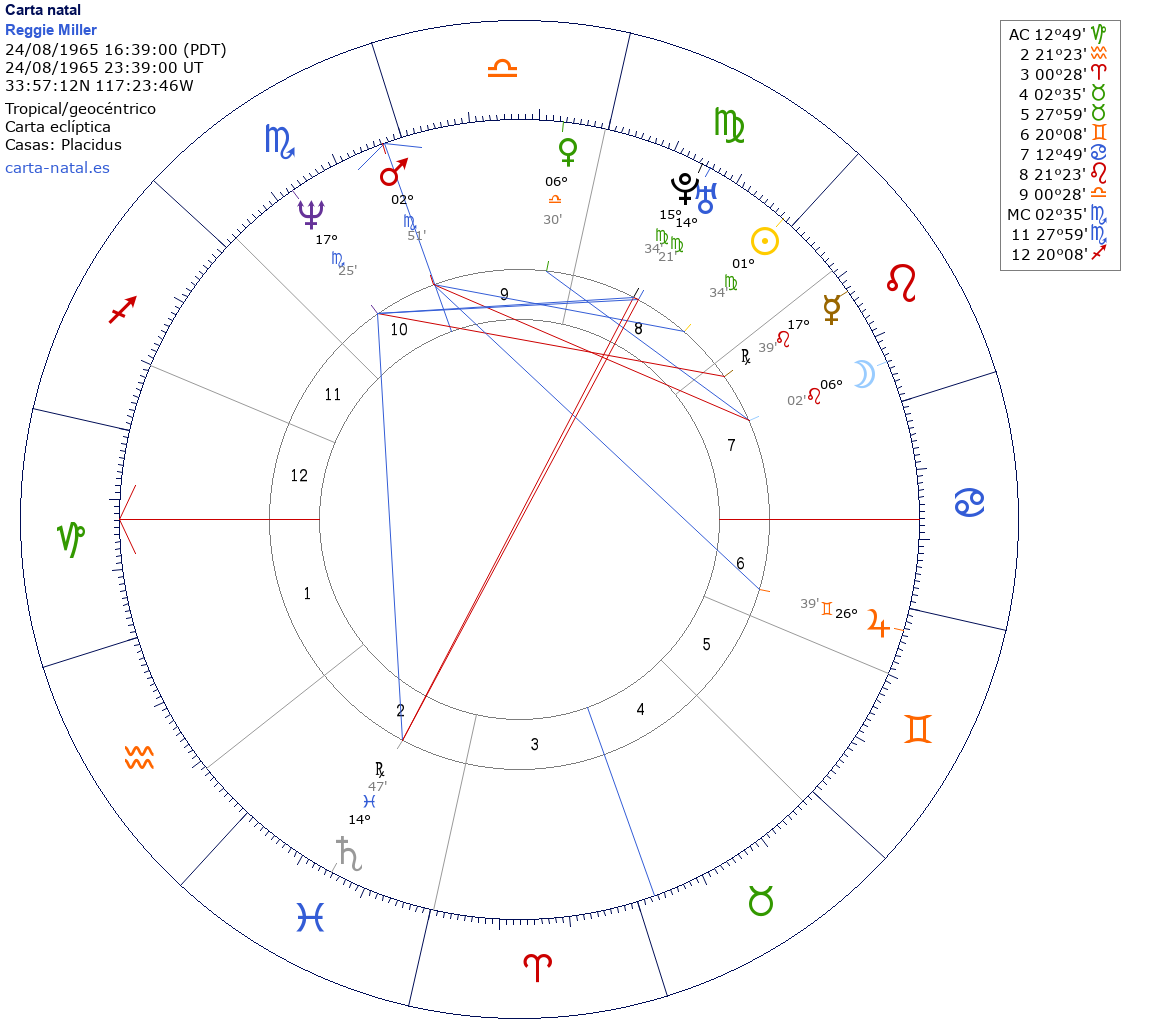 Esta es la carta natal de Reggie Miller, jugador de baloncesto estadounidense.