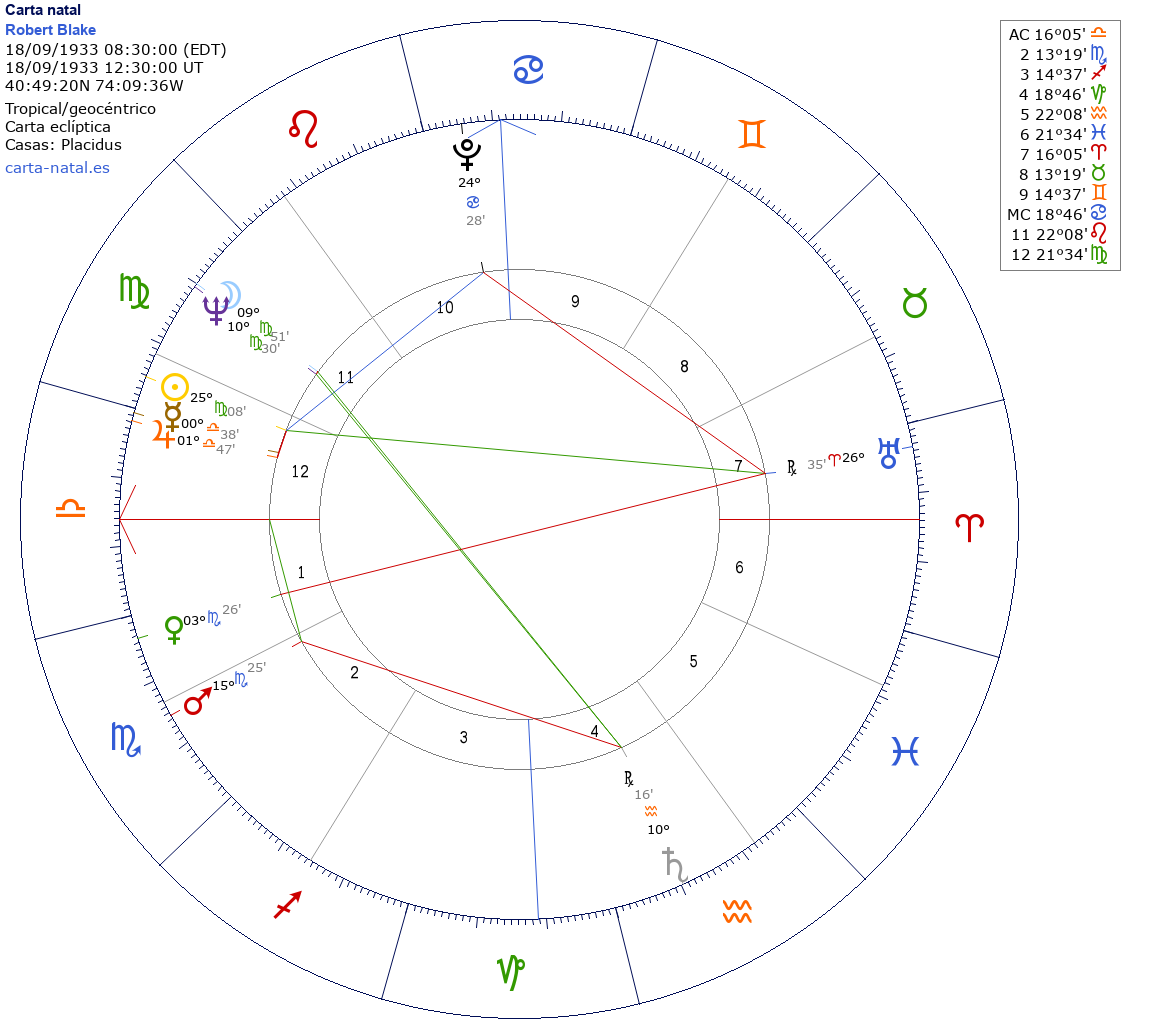 Esta es la carta natal de Robert Blake, actor estadounidense.