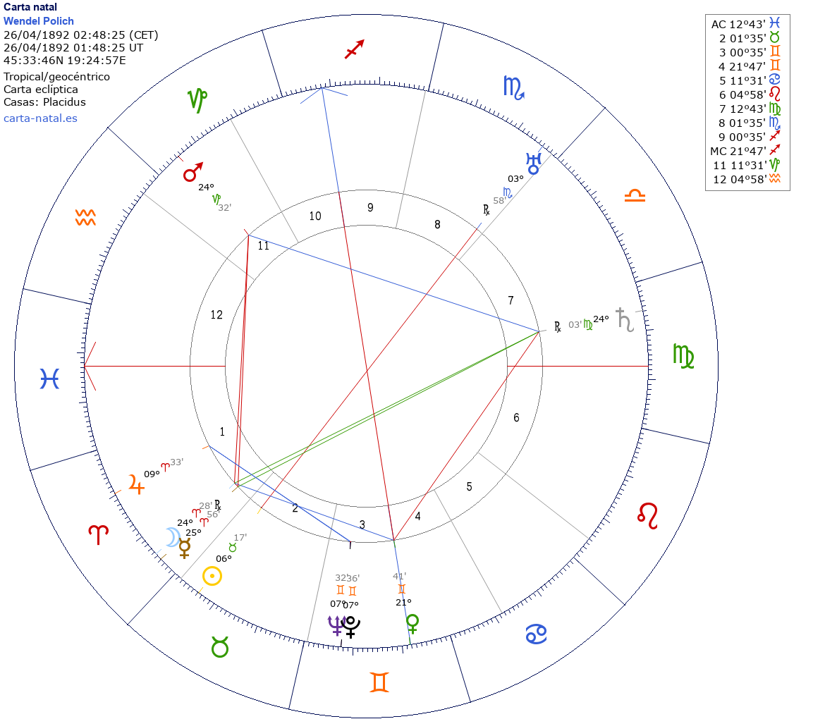 Esta es la carta natal de Wendel Polich, matemático y astrólogo co-desarrollador del sistema de casas Topocéntrico.