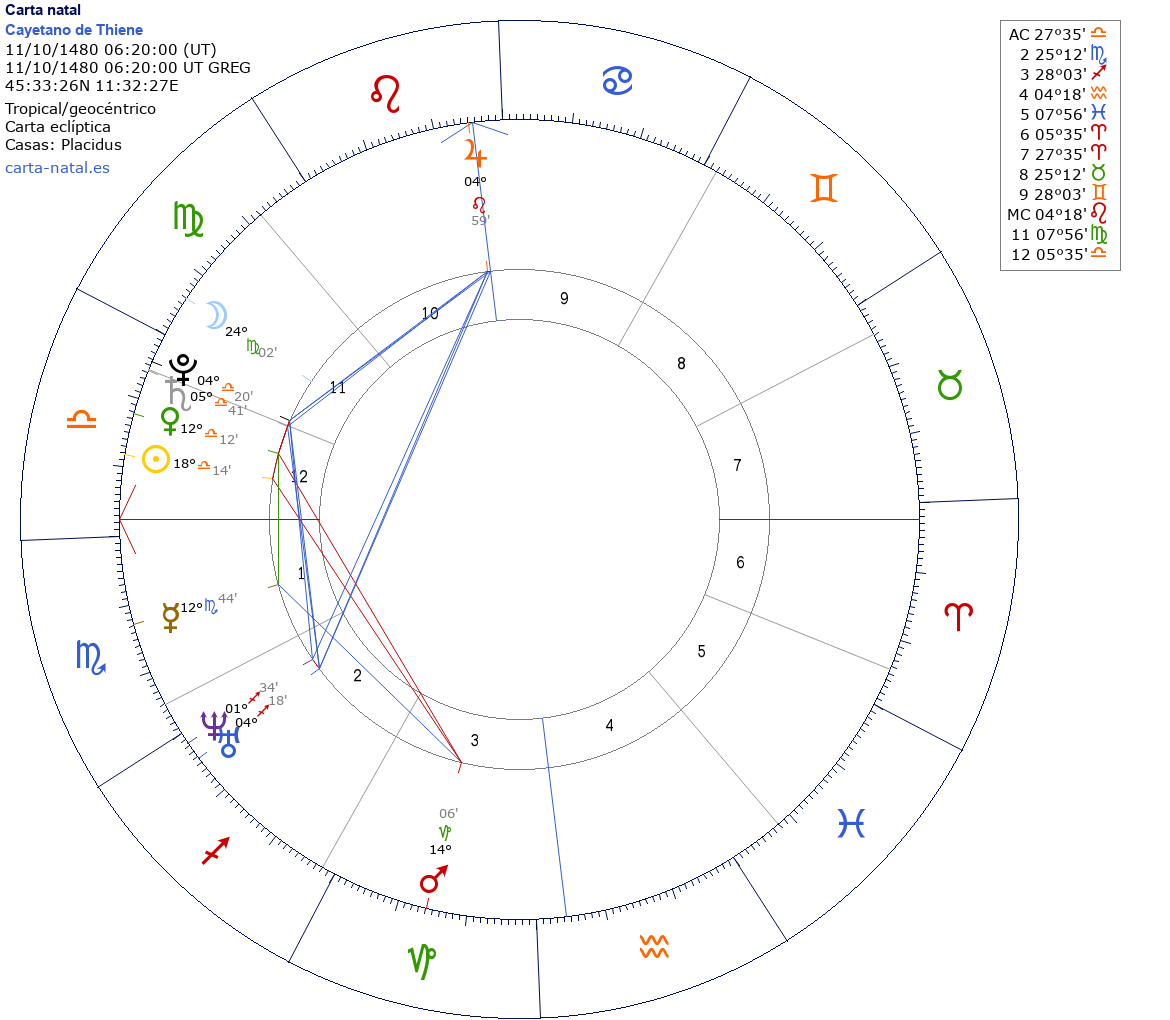 Cayetano de Thiene nació el 02 de Octubre de 1480 a las 06:20:00 en Vicenza (Vicenza), Italia