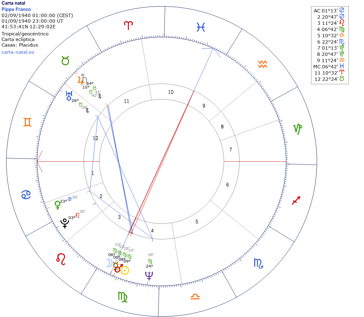Esta es la carta natal de Pippo Franco, actor, comediante, presentador de televisión y cantante italiano.