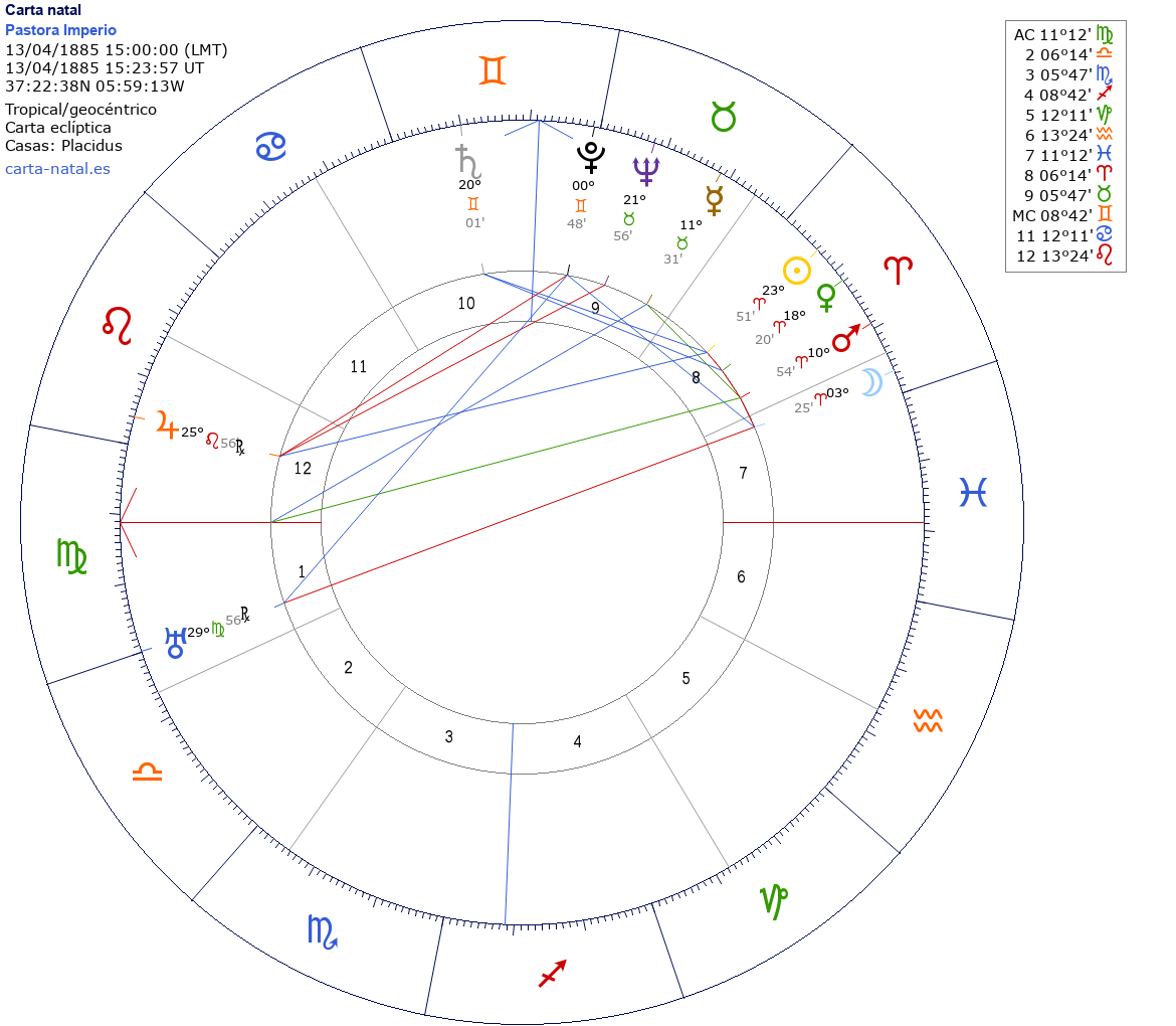 Pastora Imperio nació el 13 de Abril de 1885 a las 15:00:00 en Sevilla (Sevilla), España