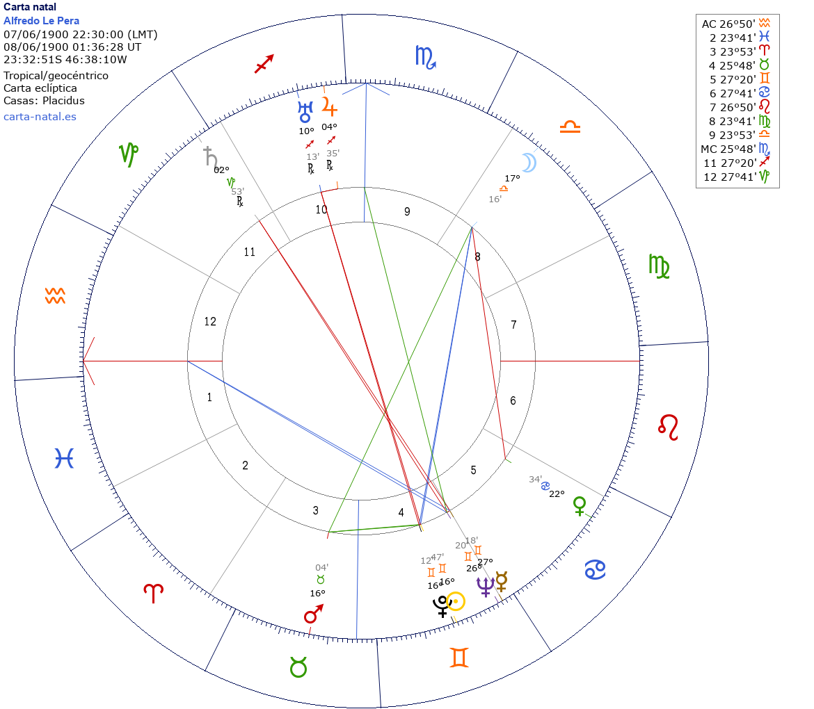 Alfredo Le Pera nació el 7 de Junio de 1900 a las 22:30:00 en Sao Paulo (São Paulo), Brasil