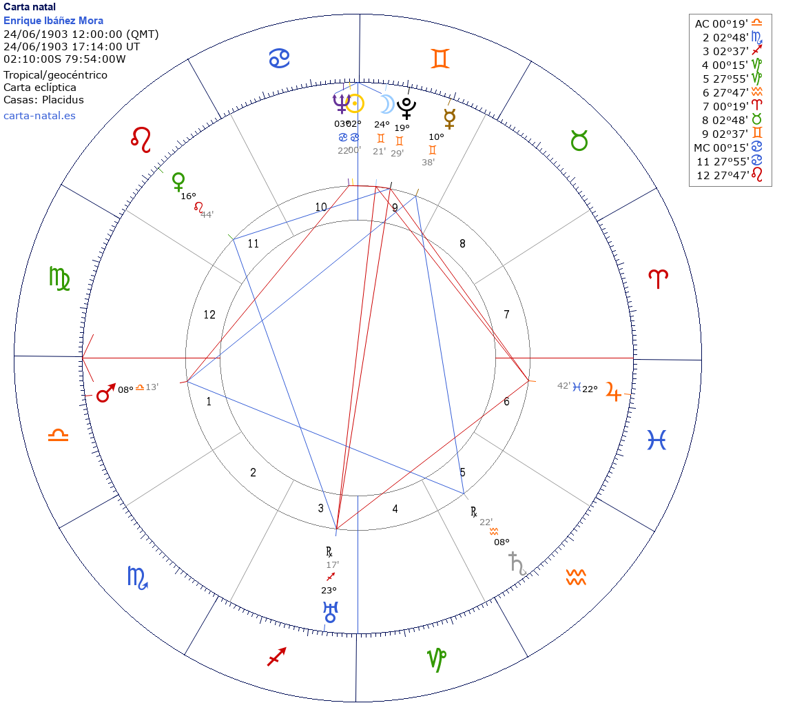 Esta es la carta natal de Enrique Ibáñez Mora, músico, cantante y compositor ecuatoriano.