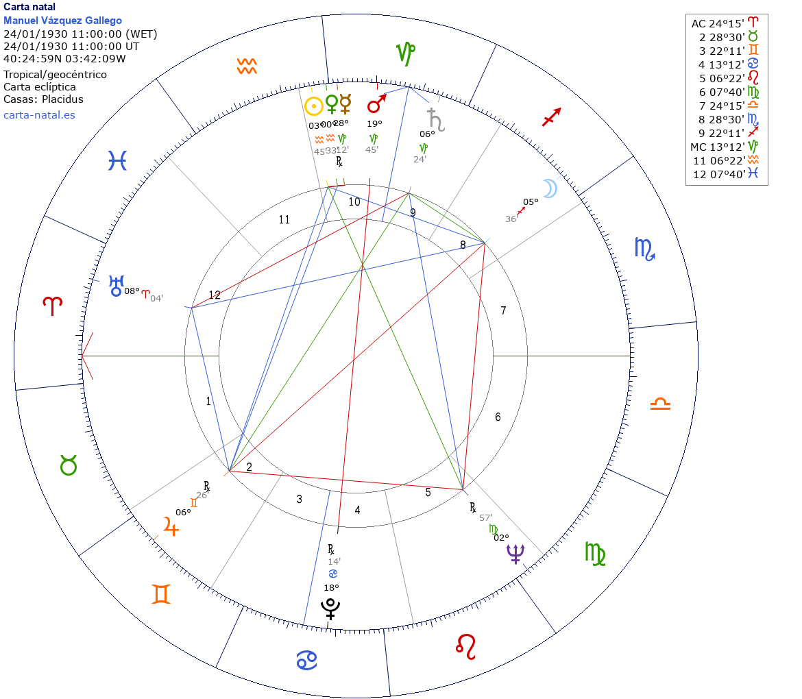 Manuel Vázquez Gallego nació el 24 de Enero de 1930 a las 11:00:00 en Madrid (Madrid), España