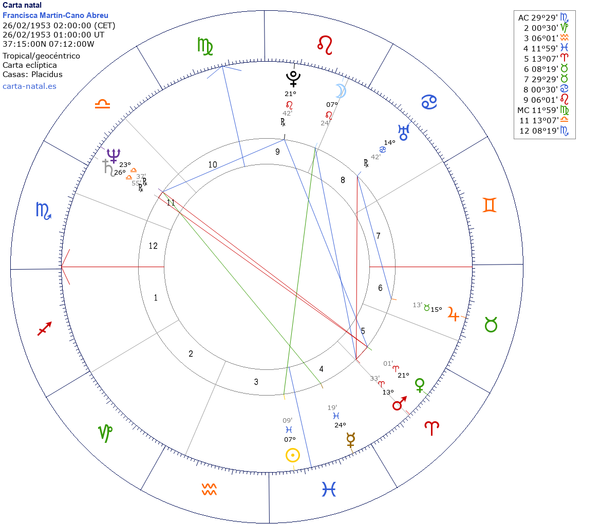 | SaturnoSaturno | Libra26°55'08"R | 11 |