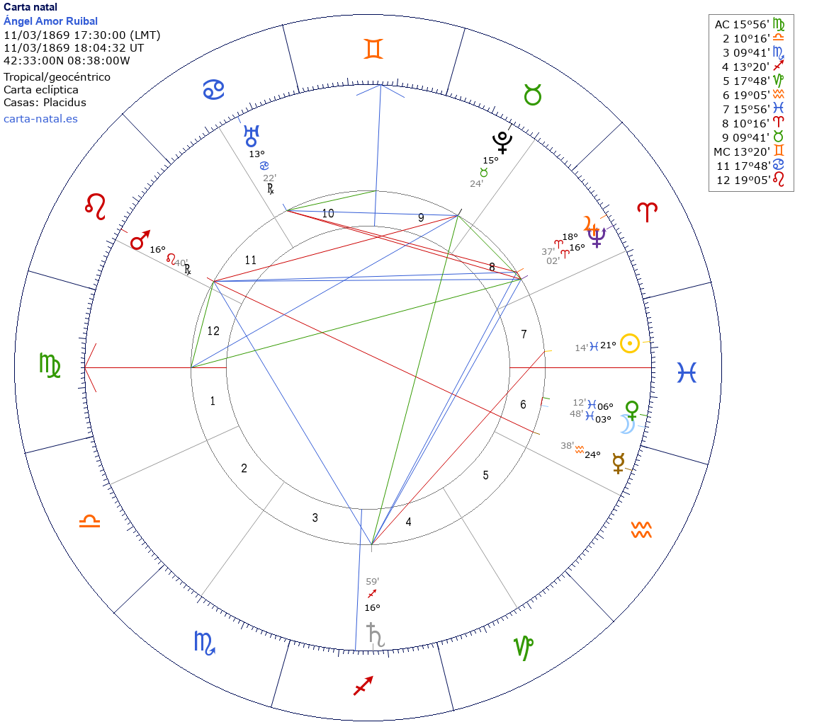 Esta es la carta natal de Ángel María José Amor Ruibal, pensador, filósofo, lingüista y teólogo español, creador de la filosofía denominada Correlacionismo.