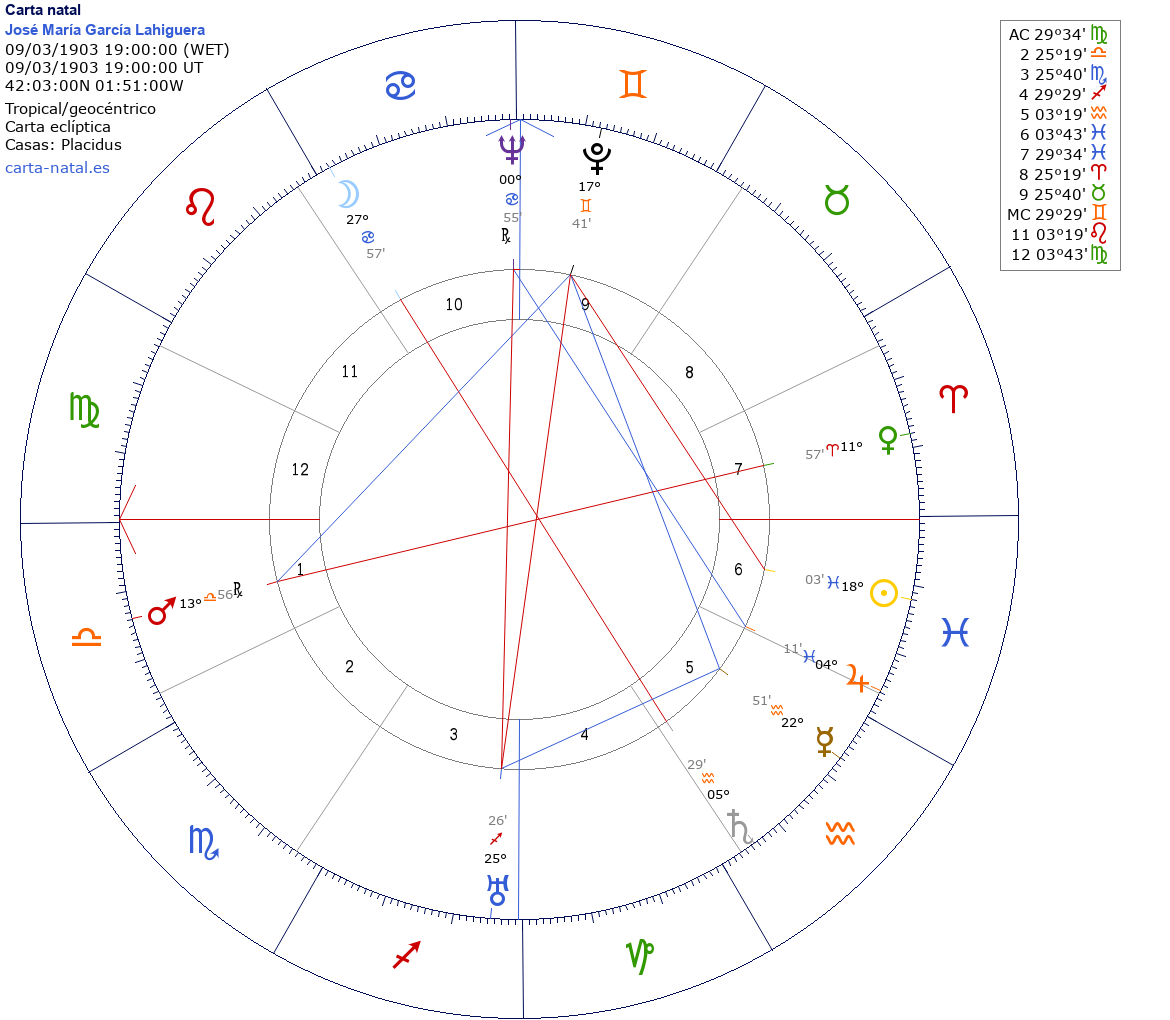José María García Lahiguera nació el 9 de Marzo de 1903 a las 19:00:00 en Fitero (Navarra), España