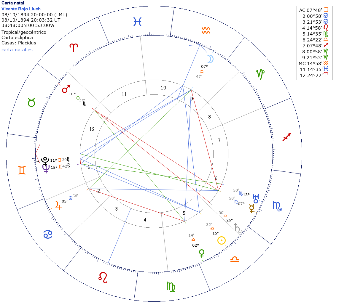 | LunaLuna | Trígono | AscendenteAscendente | 0.02° (S) |