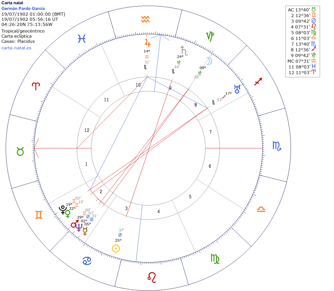 Germán Pardo García nació el 19 de Julio de 1902 a las 01:00:00 en Ibague (Tolima), Colombia