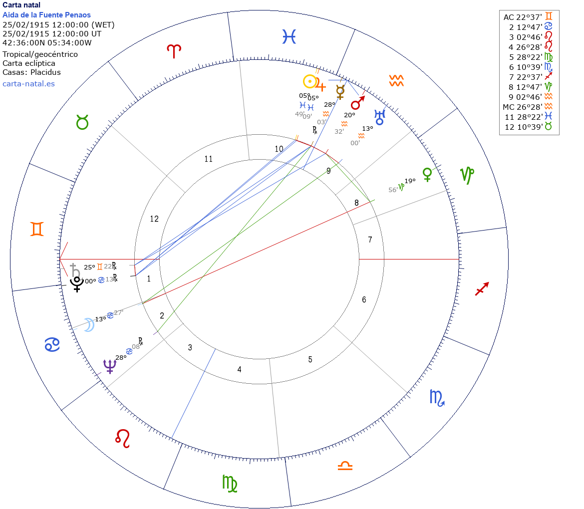 | Casa 1 (AC) | Géminis22°37'19" |