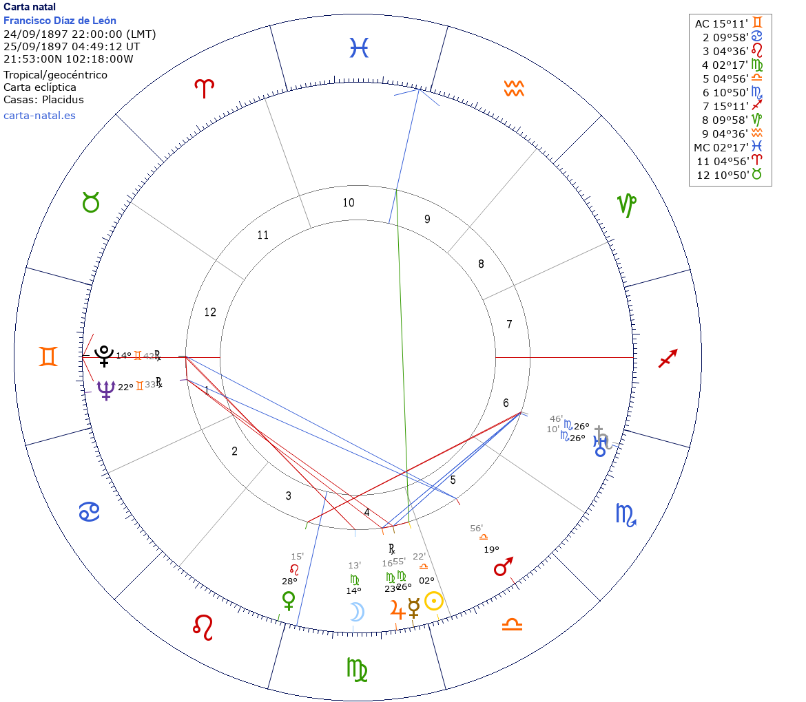 Francisco Díaz de León nació el 24 de Septiembre de 1897 a las 22:00:00 en Aguascalientes (Aguascalientes), México