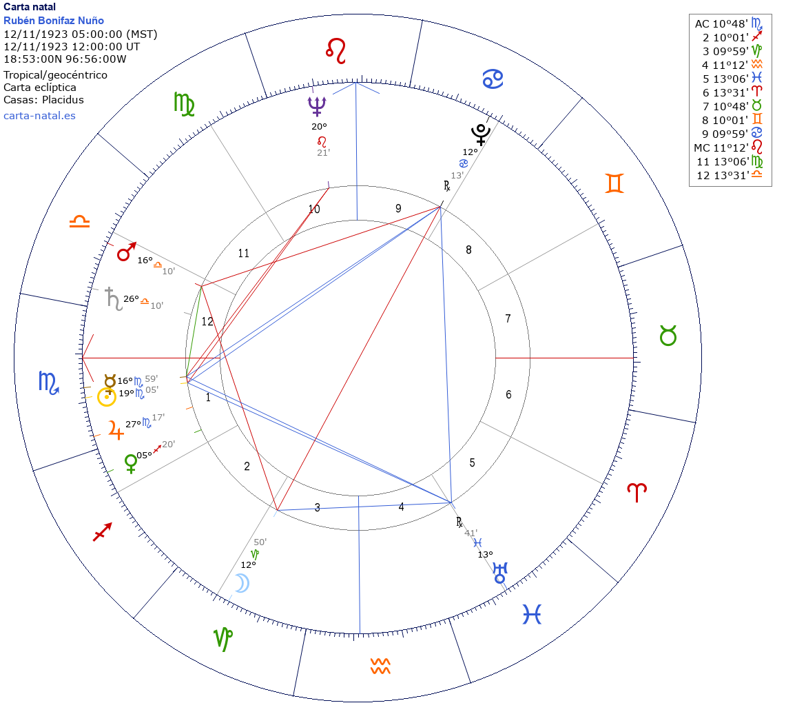 | JúpiterJúpiter | Escorpio27°16'58" | 1 |