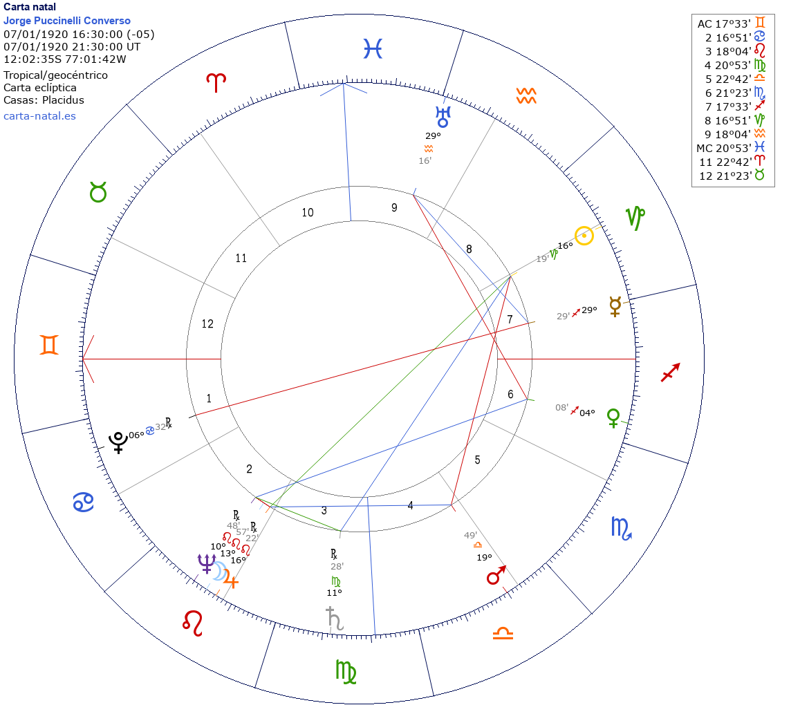 Jorge Puccinelli Converso nació el 7 de Enero de 1920 a las 16:30:00 en Lima (Lima), Perú