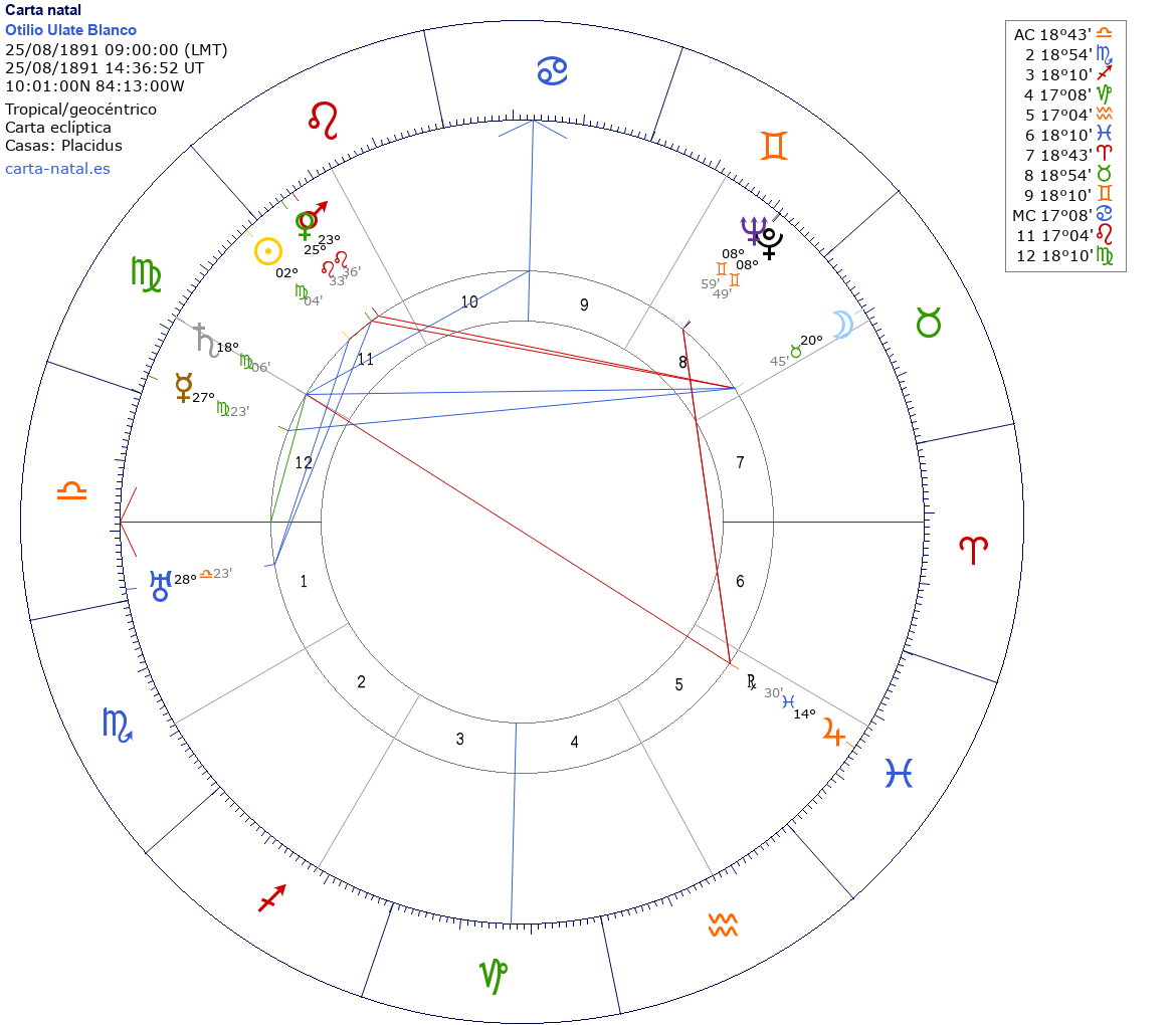 | SaturnoSaturno | Virgo18°05'39" | 11 » 12 |